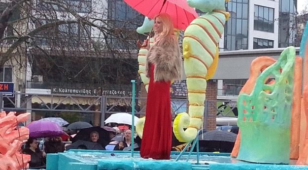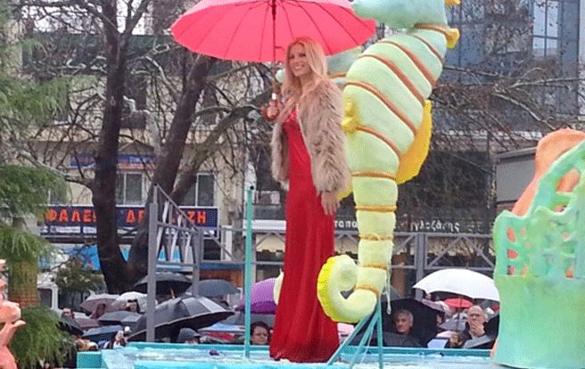 Στο θρόνο του κεντρικού άρματος της καρναβαλικής παρέλασης στην Ξάνθη εμφανίστηκε η Ευαγγελία Αραβανή. Μέσα σε ένα κόκκινο φόρεμα και πάνω στο άρμα της η παρουσιάστρια κυριολεκτικά έλαμπε παρά την έντονη βροχόπτωση.