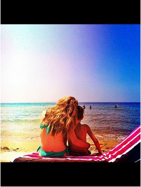 Μαζί της, βέβαια και τα παιδιά της. Μάλιστα, κάποιος από την παρέα της, τράβηξε και μια πολύ τρυφερή φωτογραφία με φόντο το γαλάζιο…