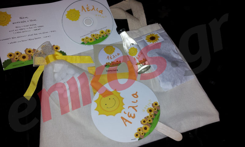 Όταν βγήκε έξω από την εκκλησία, την περίμεναν μουσικοί από την Κρήτη για να της τραγουδήσουν μαντινάδες.Όλο το concept της βάφτισης ήταν κρητικό. Στον προαύλιο χώρο της εκκλησίας, δίσκοι με ποικιλές τυριών, κρητικά παξιμάδια και κρεατικά πηγαινοέρχονταν, ενώ η ρακή έρεε άφθονη.Η μπομπονιέρα ήταν εντυπωσιακή. Ήταν μια τσαντούλα που περιείχε 1 cd με ένα ποίημα, μία αυτοσχέδια βεντάλια, μια κονκάρδα και έναν ήλιο, 1 σακουλάκι με ηλιόσπουρους, ένα μπουκαλάκι με ρακή και φυσικά κουφέτα. Το όνομα Αέλια ήταν γραμμένο παντού.Για του λόγου το αληθές…