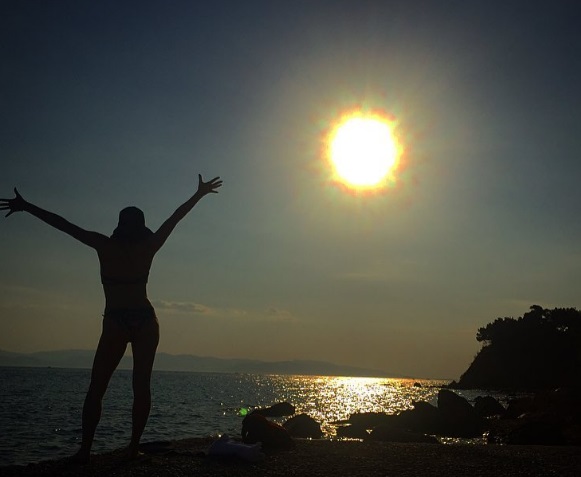 Και η δικαιολογημένα πήρε πολλά likes, αφού η Σμαράγδα ποζάρει φορώντας το μαγιό της ενώ ο ήλιος δύει.