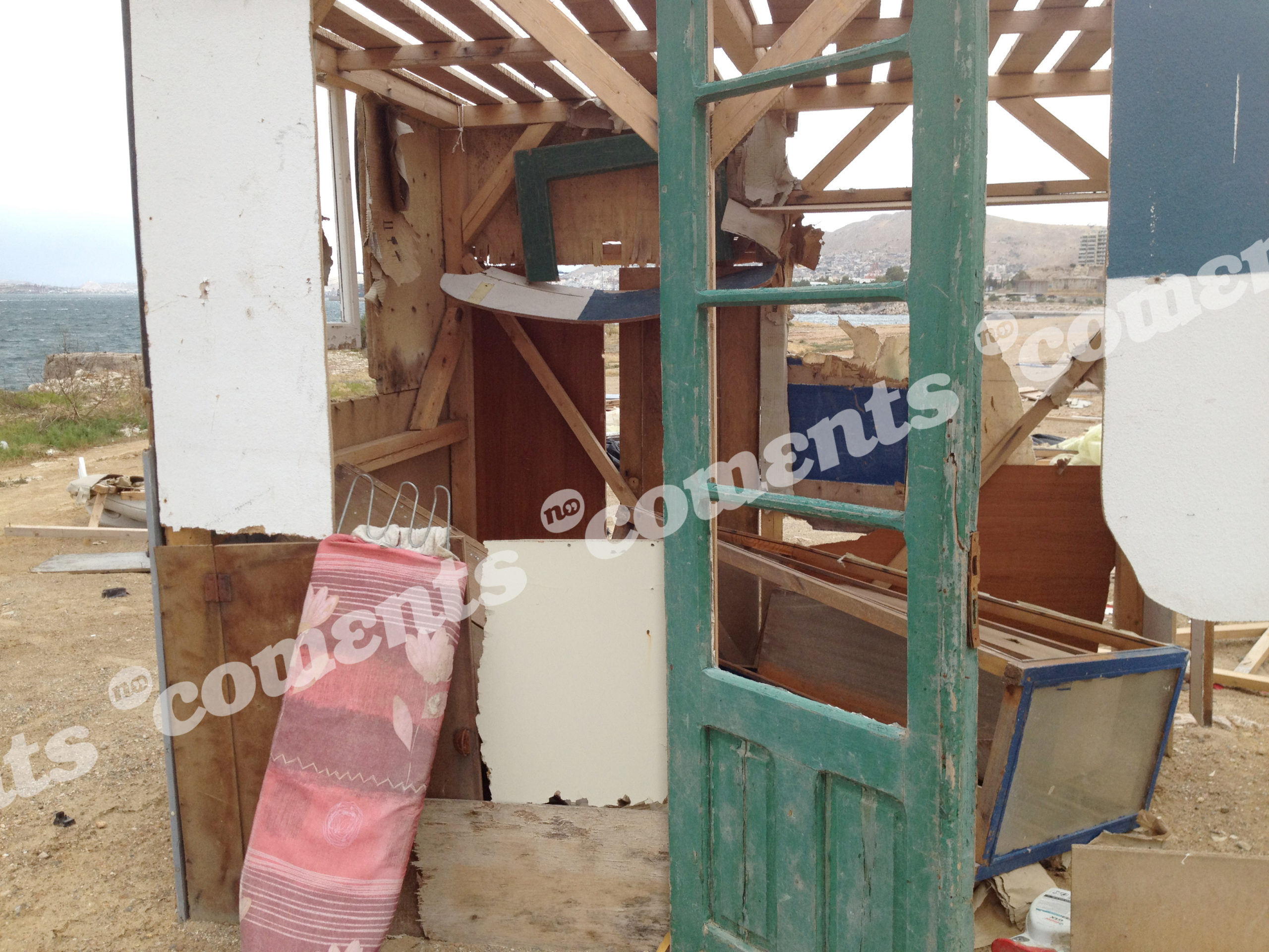 Διαλυμένες ξύλινες κατασκευές, κατεστραμμένες πολυθρόνες και μερικά από τα ρούχα που φορούσαν οι ηθοποιοί για τις ανάγκες του ρόλου τους, είναι ό,τι απέμεινε από τα σκηνικά της τελευταίας ταινίας του Θεόδωρου Αγγελόπουλου «Άλλη Θάλασσα», που δεν ολοκληρώθηκε ποτέ.