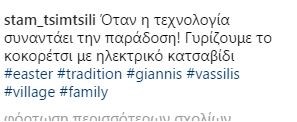 Η αγαπημένη παρουσιάστρια για τις ημέρες του Πάσχα βρίσκεται με την οικογένειά της στην Αρχαία Κόρινθο, όπου απολαμβάνει στιγμές χαλάρωσης.Ο λόγος για την Σταματίνα Τσιμτσιλή, η οποία τηρεί τις παραδόσεις και σήμερα σούβλισε το κοκορέτσι μαζί με φιλικά και συγγενικά της πρόσωπα, όπως προστάζει η παράδοση.Η παρουσιάστρια ανέβασε μία φωτογραφία στον προσωπικό της λογαριασμό στο Instagram και έγραψε χαρακτηριστικά: «Όταν η τεχνολογία συναντάει την παράδοση! Γυρίζουμε το κοκορέτσι με ηλεκτρικό κατσαβίδι».