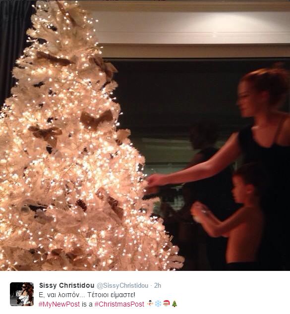 «Ε ναι, λοιπόν. Τέτοιοι είμαστε». Με τα λόγια αυτά θέλησε η Σίσσυ Χρηστίδου να συνοδεύσει τη φωτογραφία που δημοσίευσε στο twitter και στην οποία μας αποκαλύπτει ότι μόλις στόλισε χριστουγεννιάτικο δέντρο μαζί με τους γιους της, Φίλιππο – Ραφαήλ και Μιχαήλ.