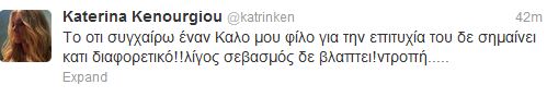 Το tweet αυτό, όμως, μάλλον κίνησε υποψίες και η Κατερίνα επανήλθε στο twitter, με ένα νέο μήνυμα, με πολλούς αποδέκτες. Πριν από λίγο έγραψε:
