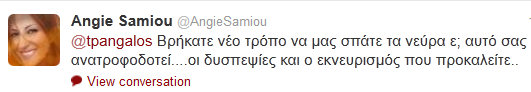 Αυτό το tweet προκάλεσε την αντίδραση της Άντζυς Σαμίου, η οποία απάντησε: