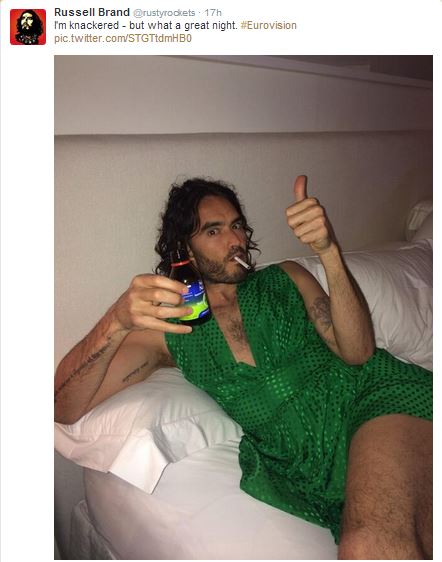 O Russell Brand φορώντας πράσινο φόρεμα με βαθύ ντεκολτέ, πόζαρε σαν Conchita και μάλιστα ανέβαζε συνέχεια φωτογραφίες στο Twitter ζητώντας από το κοινό να τον ψηφίσουν…