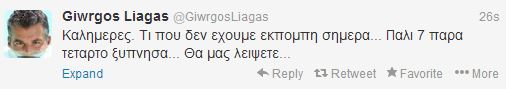 Το παράπονό του το μετέφερε μέσω twitter στους διαδικτυακούς του φίλους.