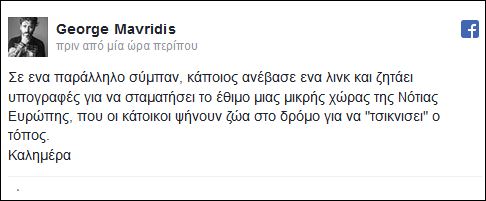 Ο Γιώργος Μαυρίδης, ο tattoo artist και παρουσιαστής από τη Θεσσαλονίκη που έγινε γνωστός μέσα από το «World Party», έχει μεγάλη αγάπη για τα ζώα και είναι χορτοφάγος. Σε ανάρτησή του στο Facebook, εξέφρασε τη δυσαρέσκειά του για το έθιμο της Τσικνοπέμπτης.«Σε ένα παράλληλο σύμπαν, κάποιος ανέβασε ένα λινκ και ζητάει υπογραφές για να σταματήσει το έθιμο μιας μικρής χώρας της Νότιας Ευρώπης, που οι κάτοικοι ψήνουν ζώα στο δρόμο για να “τσικνίσει” ο τόπος. Καλημέρα», έγραψε ο Γιώργος Μαυρίδης στην προσωπική του σελίδα στο Facebook.