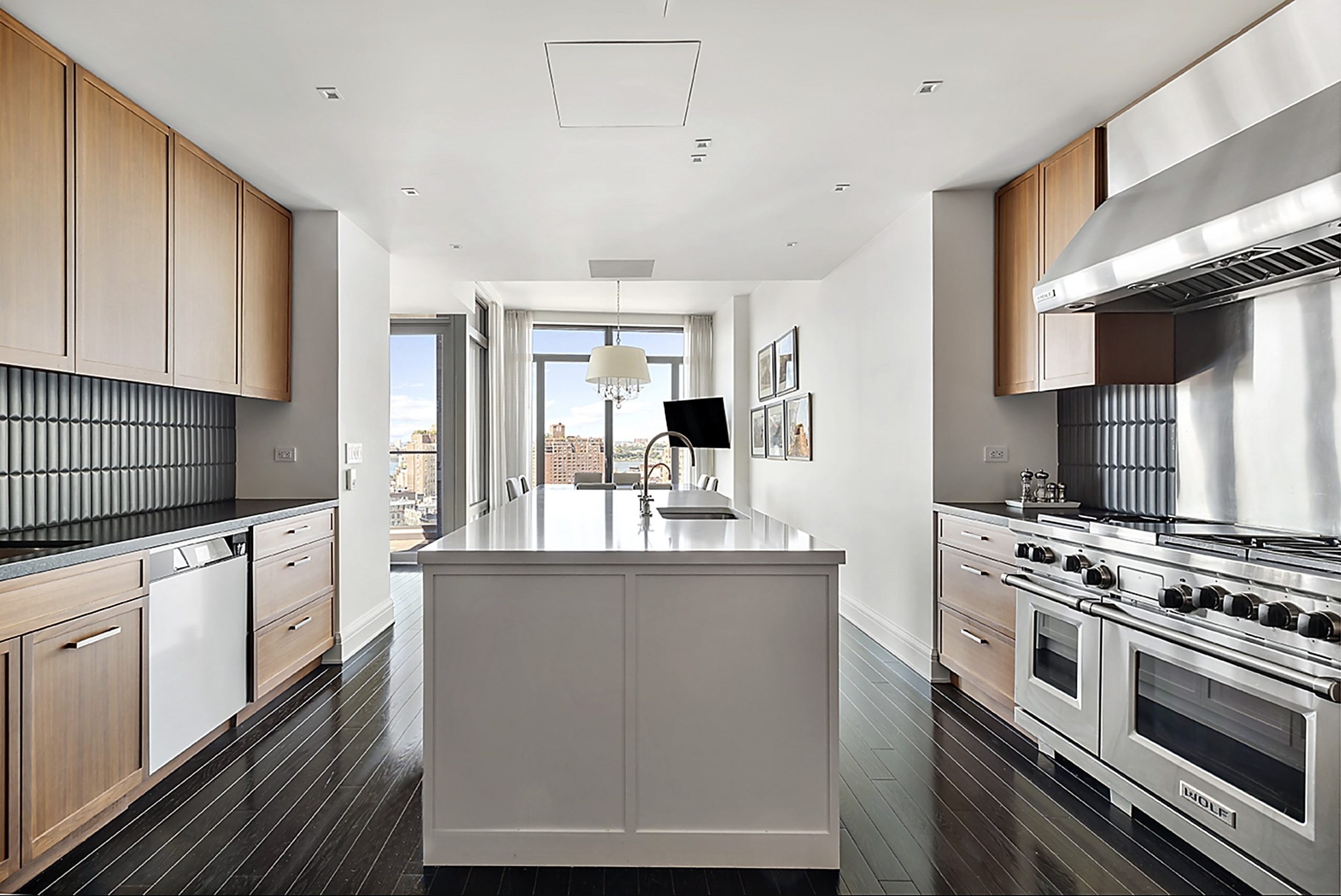 Η μεγάλη κουζίνα είναι πλήρως εξοπλισμένη με ηλεκτρικές συσκευές, σύμφωνα με την καταχώριση ακινήτων στο Compass. Υπάρχουν επίσης παράθυρα από το δάπεδο μέχρι την οροφή και ιδιωτική βεράντα.