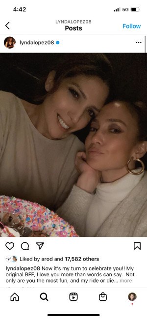 Η αδελφή της JLo, Λίντα, ανέβασε μια φωτογραφία των δυο τους με τη λεζάντα “φώτισες τον κόσμο και μου έδειξες τι είναι δυνατό και είσαι πάντα η έμπνευσή μου. Μερικές φορές δεν μπορώ να πιστέψω πόσο τυχερή είμαι που ο Θεός έβαλε μία όμορφη ψυχή που είσαι εσύ στη ζωή μου. Σου εύχομαι τα καλύτερα γενέθλια!”.
