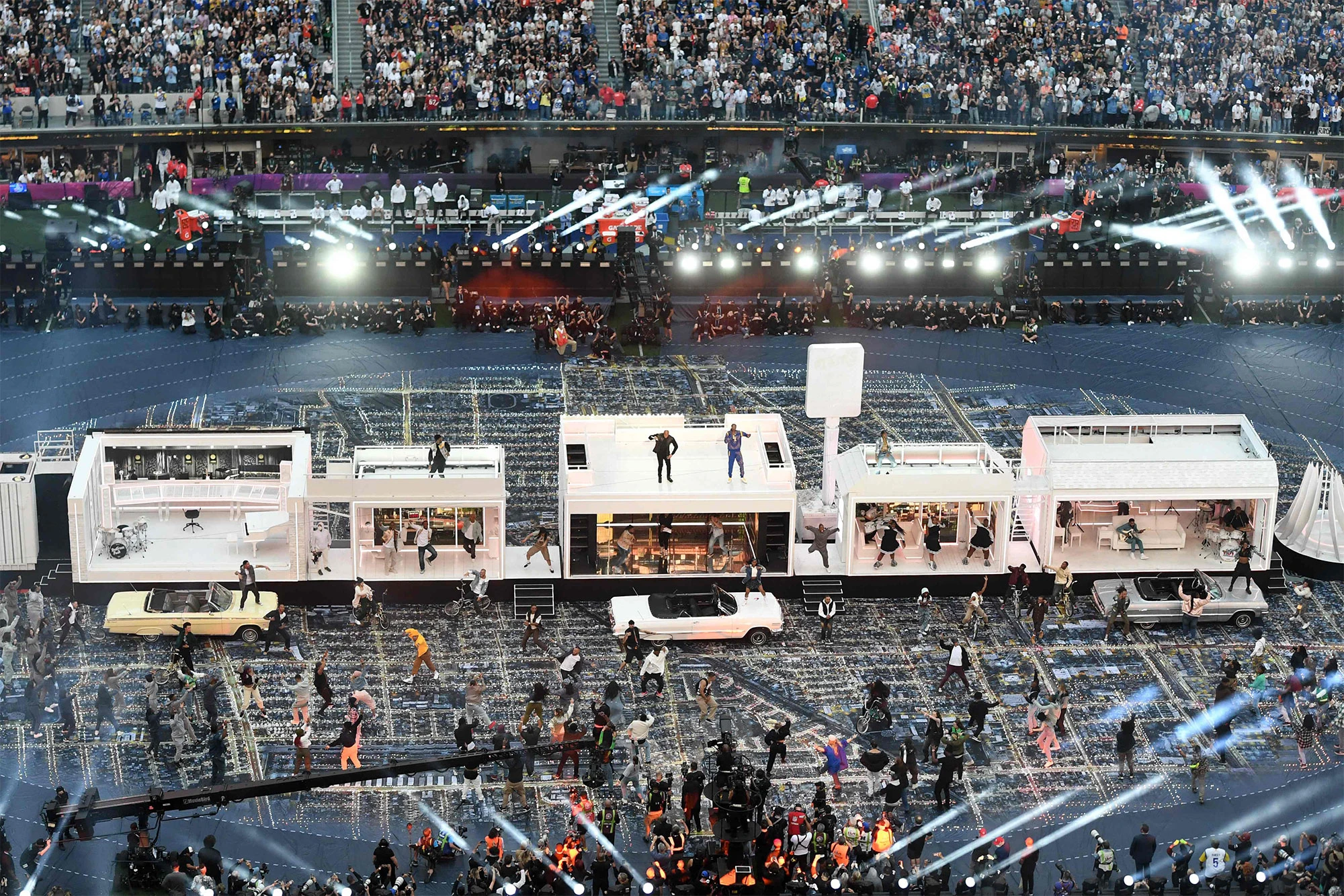 Πράγματι, η γειτονιά που έγινε αναπαράσταση είναι η γειτονιά που μεγάλωσε ο Dr. Dre στο Compton της California. Ο Dr. Dre ήταν αυτός που είχε και την καλλιτεχνική επιμέλεια της 15λεπτης παράστασης, στην οποία συμμετείχαν και οι Mary J. Blige, Snoop Dog, Eminem, Kendrick Lamar, 50 Cent και Anderson .Paak.