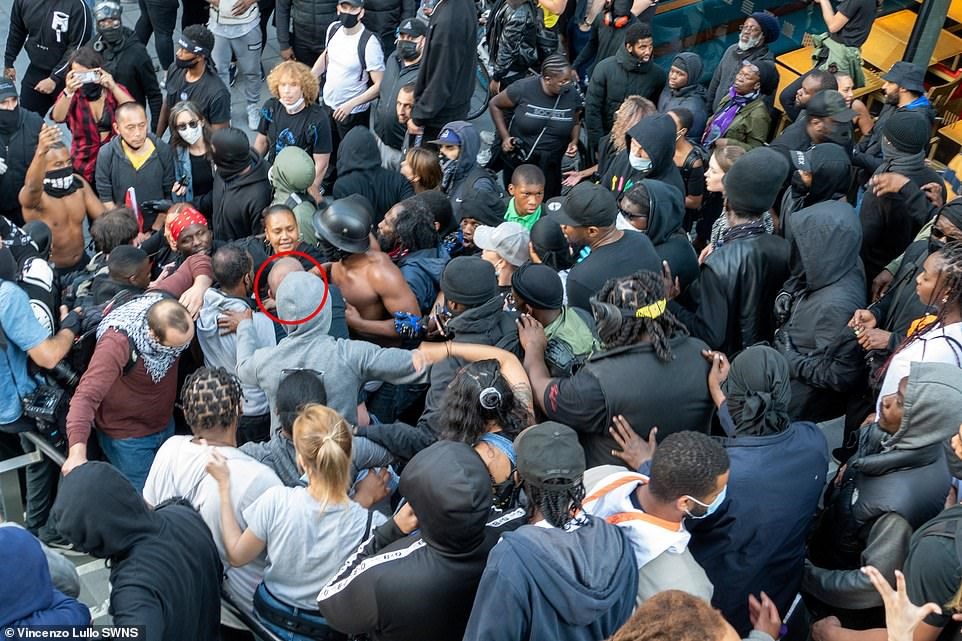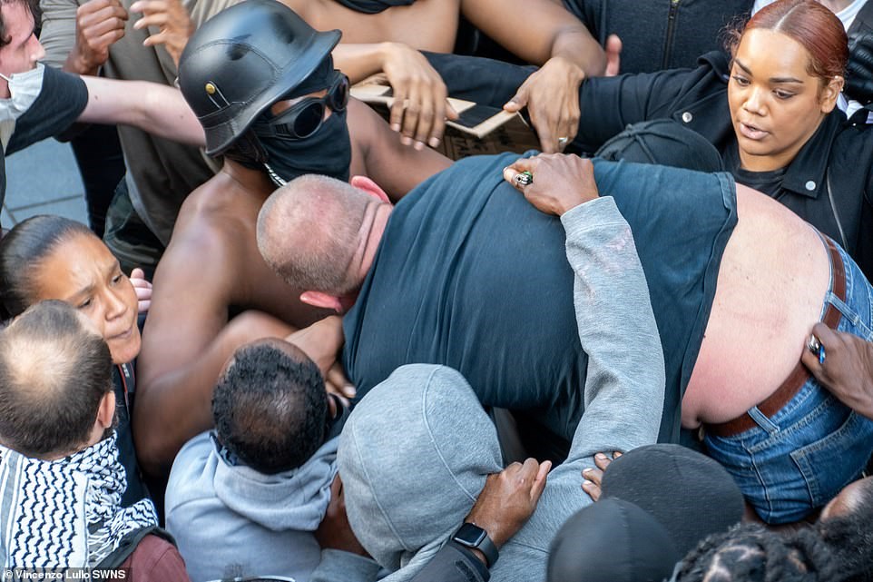 Ο λευκός άνδρας είχε σηκώσει το χέρι του κατά των αντιρατσιστών που διαδήλωναν, όταν απομακρύνθηκε και βρέθηκε εγκλωβισμένος στο πλήθος που έδειχνε απειλητική διάθεση προς το μέρος του. Ο άνδρας έχει πέσει στο έδαφος παλεύοντας με άλλους, σε έναν καβγά που ξέσπασε όταν ακούστηκε το “γ@@@@@ε το Black Lives Matter” με αποτέλεσμα να συγκρουστούν οι ακροδεξιοί με τους διαδηλωτές υπέρ των μαύρων ζωών και με αστυνομικούς. Ο Πάτρικ Χάτσινσον επενέβη, άρπαξε τον χτυπημένο άνδρα στον ώμο του και τον έβγαλε σώο από το εξαγριωμένο πλήθος σε μια στιγμή που έμεινε στην ιστορία και έδωσε μάθημα ανθρωπιάς και πολιτισμού, ενώ από τις φωτογραφίες που δημοσιεύονται γίνεται εύκολα αντιληπτό πόσο κινδύνευε η ζωή του σε διαφορετική περίπτωση.