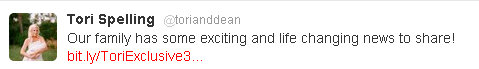 Μόλις πριν από 5 μήνες έφερε το τρίτο της παιδί στον κόσμο…Και είναι πάλι έγκυος! Ο λόγος για την Tori Spelling, τη γνωστή Donna από το “Χτυποκάρδια στο Beverly Hills”. Το ανακοίνωσε μέσω twitter. Έγραψε: