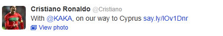 O Cristiano Ronaldo ταξιδεύει με τον Κaka για Κύπρο, αφού την Τρίτη 27 Μαρτίου θα διεξαχθεί ο αγώνας ΑΠΟΕΛ – ΡΕΑΛ Μαδρίτης για την φάση των “8” στο Champions League.To θέμα είναι πως θα αντιδράσουν οι Κύπριοι οπαδοί στην εμφάνιση του Ronaldo. Να σας υπενθυμίσουμε ότι έχουν κακό…προηγούμενο!Στο ματς που έγινε για τα προκριματικά του Euro 2012, στις 2 Σεπτεμβρίου, o Cristiano αγωνιζόταν με την Εθνική Πορτογαλίας σε κυπριακό έδαφος. Κάθε φορά που ακουμπούσε τη μπάλα, οι Κύπριοι φίλαθλοι φώναζαν “Μέσι – Μέσι”.Όταν ο Ronaldo έβαλε γκολ έτρεξε στις κερκίδες κάνοντας διάφορες χειρονομίες…