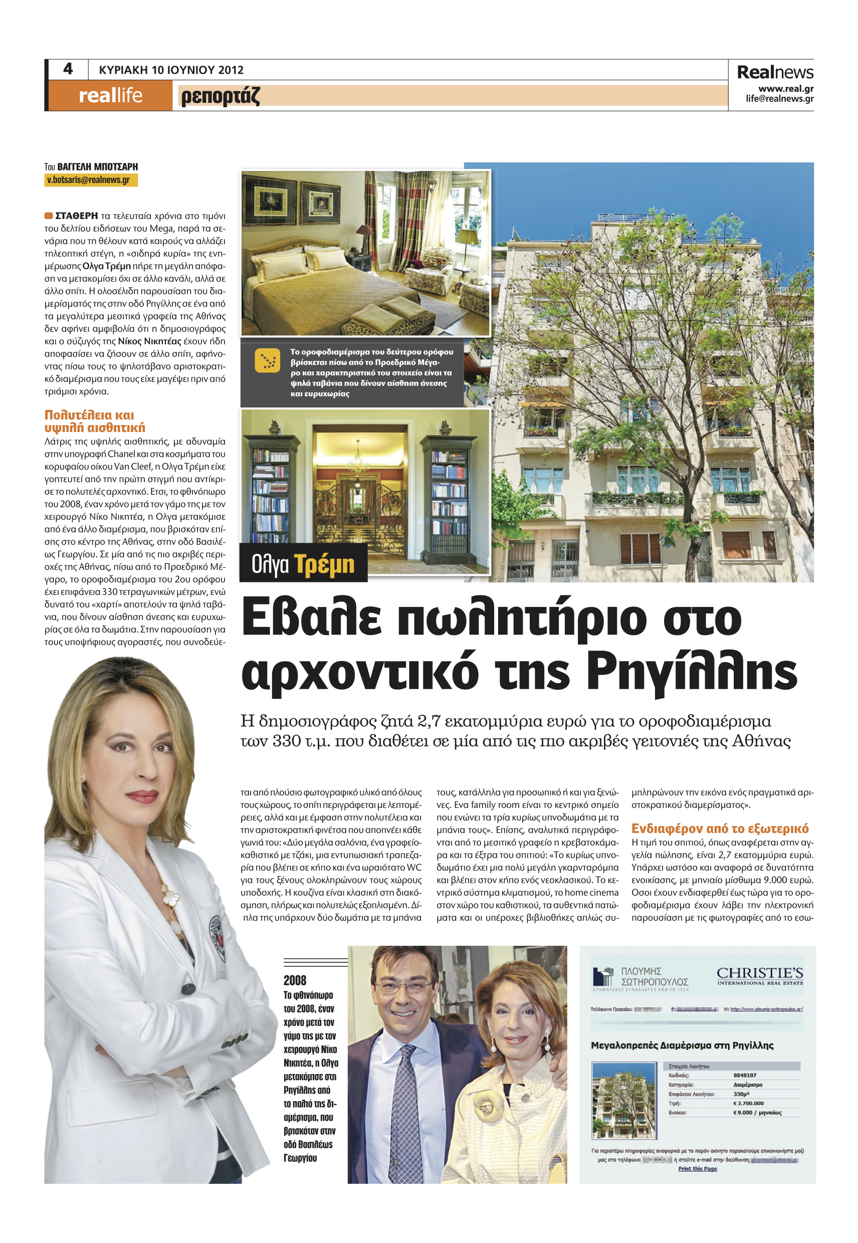 Η δημοσιογράφος ‘Ολγα Τρέμη και ο σύζυγός της Νίκος Νικητέας αποφάσισαν να μετακομίσουν και αναζητούν αγοραστή για το πολυτελές ακίνητό τους. Διαβάστε το ρεπορτάζ της Real News, το οποίο περιέχει όλες τις λεπτομέρειες για την πώληση του σπιτιού, αλλά και φωτογραφίες από το αρχοντικό της Όλγας Τρέμη…