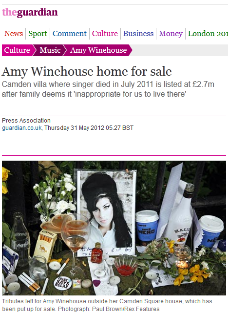 Οι γονείς της αδικοχαμένης τραγουδίστριας, υποστήριξαν ότι τους είναι αδύνατον να συνεχίσουν να μένουν στο σπίτι όπου πέθανε η κόρη τους.Πριν λίγους μήνες κυκλοφόρησαν φήμες, ότι η πολυτελής βίλα των Winehouses, θα μετατρεπόταν σε ίδρυμα, ως έδρα φιλανθρωπικής οργάνωσης, ωστόσο διαψεύστηκαν μετά από δήλωση του εκπροσώπου της οικογένειας στη βρετανική εφημερίδα Sun, σύμφωνα με την οποία:”Οι Winehouses αποφάσισαν, με μεγάλη τους λύπη, να πουλήσουν το σπίτι τους στο Λονδίνο, καθώς κανείς από την οικογένεια δεν νιώθει άνετα να μένει στο σπίτι όπου πέθανε η Amy”.Η αρχική τιμή του πολυτελούς ακινήτου ανέρχεται στις 2.699.950 λίρες Αγγλίας.