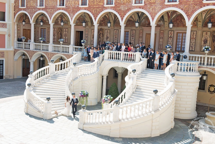 Μετά την ανταλλαγή των όρκων, σειρά είχε η γαμήλια δεξίωση δίπλα στην πισίνα του παλατιού, με θέα τη μαρίνα του Μονακό. Εκεί η Τατιάνα Σάντο Ντομίνγκο και ο δεύτερος στη διαδοχή του θρόνου του Μονακό Αντρέα Κασιράγκι παρέθεσαν γεύμα στην οικογένεια Μισόνι, την Ελληνίδα κληρονόμο Ευγενία Νιάρχου, τα αδέρφια της νύφης και τους υπόλοιπους προσκεκλημένους τους. Ειδικά για την περίσταση κατέφτασαν στο παλάτι έξι βαρέλια μπίρας από την «Brasserie de Monaco».