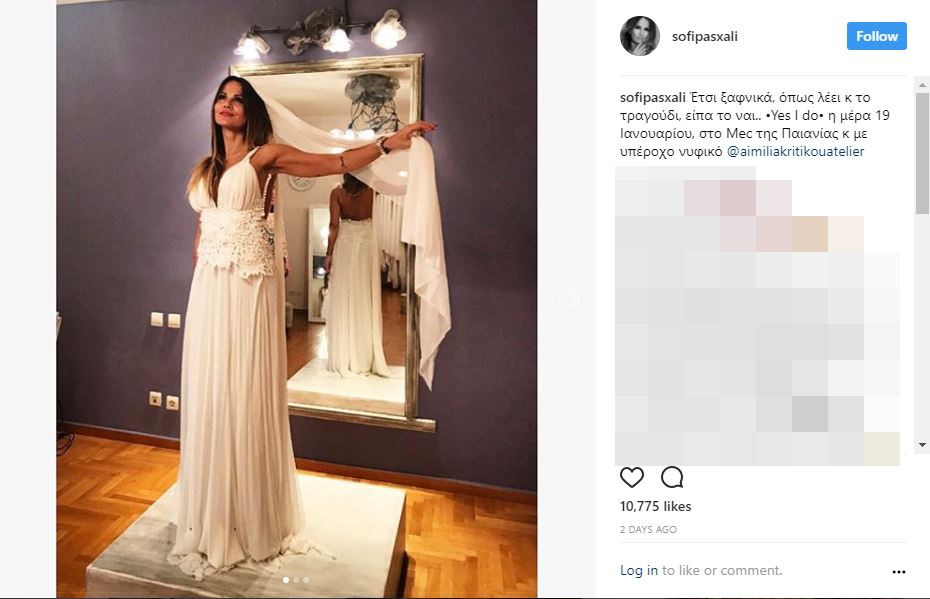 Συγκεκριμένα, έγραψε: «Έτσι ξαφνικά, όπως λέει και το τραγούδι, είπα το ναι.. •Yes I do• η μέρα 19 Ιανουαρίου, στο Mec της Παιανίας και με υπέροχο νυφικό».