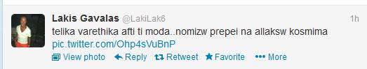 Σύμφωνα με πληροφορίες του enikos.gr ο λογαριασμός που φέρει το όνομα του Λάκη Γαβαλά στο twitter αμφισβητείται ως προς τη… γνησιότητα του. Φαίνεται ότι κάποιοι, ενδεχομένως, χρησιμοποιούν το όνομα του γνωστού σχεδιαστή που βρίσκεται μέσα στην φυλακή για να “τρολάρουν” ή να κάνουν πλάκα.