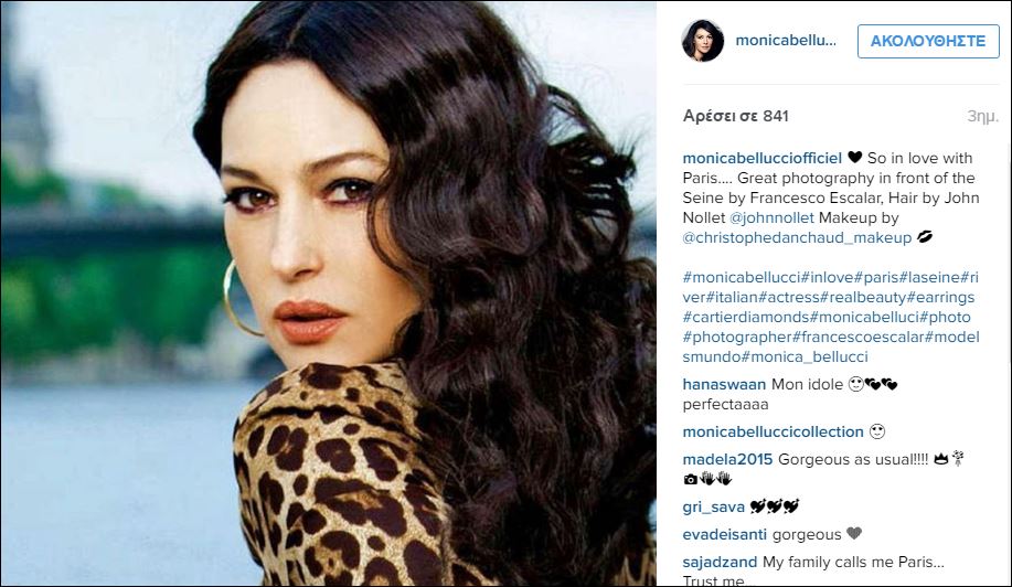 Δείτε εδώ μερικές από τις φωτογραφίες που ανέβασε η Μπελούτσι: