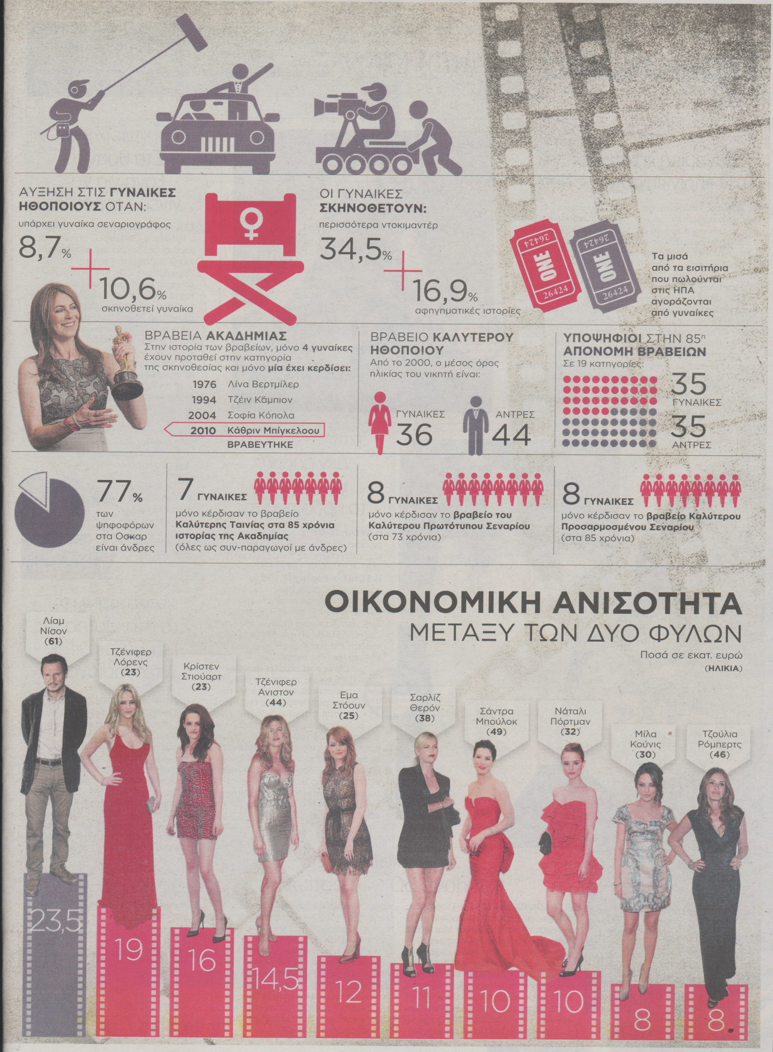 Το χάσμα μεταξύ των δύο φύλων είναι εμφανές, καθώς στη βιομηχανία του θεάματος η ισότητα είναι λέξη άγνωστη.