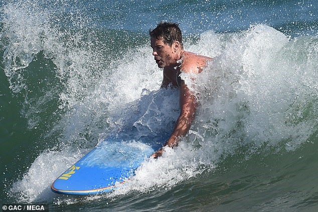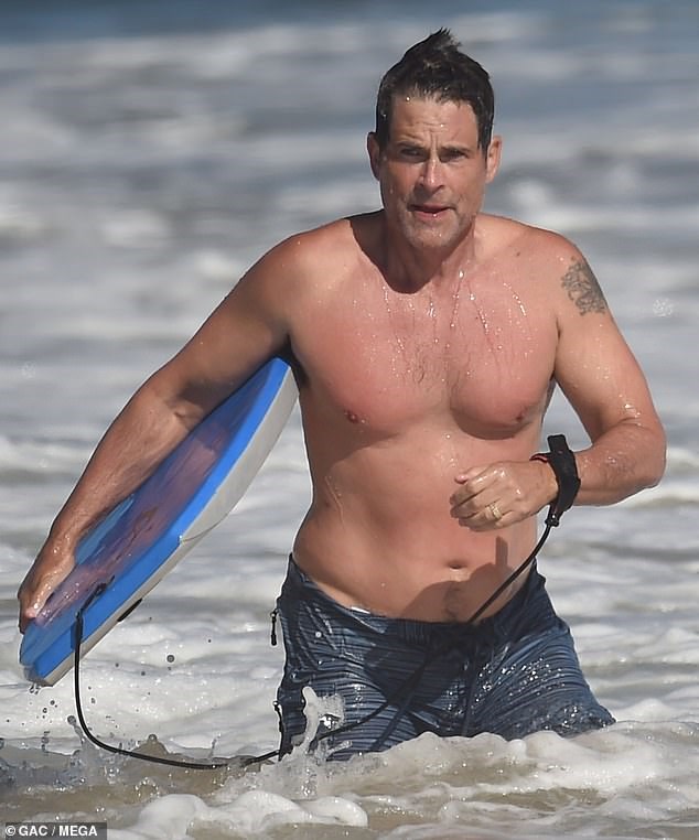 Στην παραλία της Σάντα Μπάρμπαρα “έπιασε” ο φωτογραφικός φακός τον Ρομπ Λόου, ο οποίος απόλαυσε το σερφ και τα κύματα.