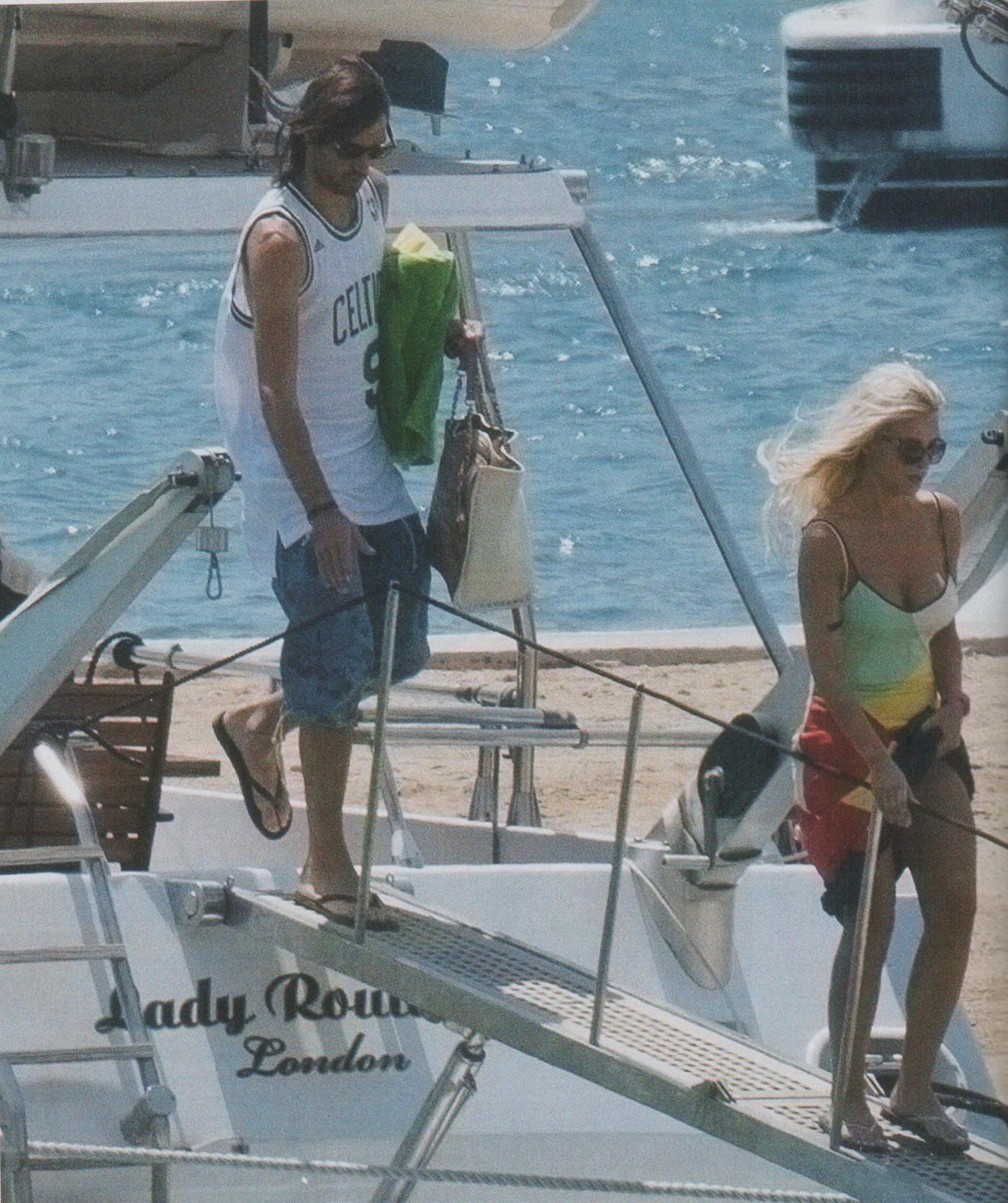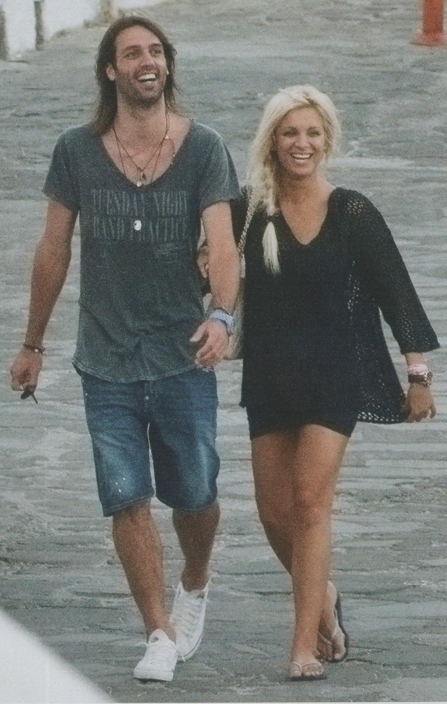 Αδιαφορώντας για τα περίεργα βλέμματα,περπατούσαν πιασμένοι χέρι χέρι στα σοκάκια του νησιού.Στην παρέα τους βρίσκονταν και άλλοι ποδοσφαιριστές, όπως ο Μιχάλης Σηφάκης και ο Σωτήρης Νίνης καθώς και δύο φιλικά τους ζευγάρια, όπως αναφέρει το δημοσίευμα του περιοδικού “HELLO!”.