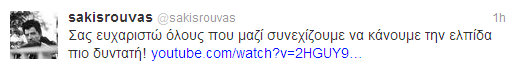 Ο κορυφαίος star, Σάκης Ρουβάς, χθες βράδυ, βραβεύτηκε ως ο “Έλληνας της χρονιάς” στα βραβεία “Ο άντρας της χρονιάς”, που διοργανώθηκαν στην Κύπρο.Φανερά συγκινημένος παρέλαβε το βραβείο του κι αποθεώθηκε από το κοινό… Σηκώθηκαν όλοι όρθιοι και χειροκροτούσαν για δυο λεπτά!Με ένα μήνυμά του στο twitter, ο Σάκης τους ευχαριστεί όλους!
