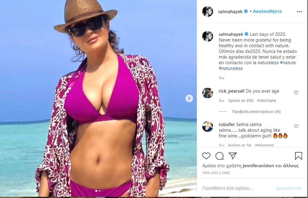 Με μία ανάρτησή της στον λογαριασμό της στο instagram η Σάλμα Χάιγεκ αποχαιρετά το 2020. Όπως γράφει: “τελευταίες ημέρες του 2020. Ποτέ δεν ήμουν πιο ευγνώμων που έχω την υγεία μου και σε επαφή με τη φύση”.