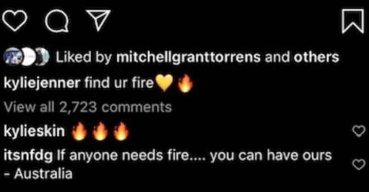 Η Κάιλι ανήρτησε, μέσω των Instagram Stories της, έκκληση-ενθάρρυνση προς τους θαυμαστές της να προχωρήσουν σε δωρεές. Στη συνέχεια όμως, η 22χρονη πόσταρε μια φωτογραφία, στην οποία χρησιμοποίησε και το emoji με τις φλόγες και έγραψε “βρείτε τη φωτιά σας”.