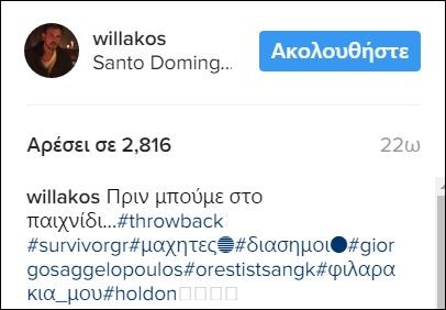 Πανικός έχει προκληθεί στα μέσα κοινωνικής δικτύωσης, μετά την φωτογραφία που κυκλοφορεί στο διαδίκτυο με κεντρικά πρόσωπα τον Γιώργο Αγγελόπουλο και τον Ορέστη Τσάνγκ από το Survivor.Πρόκειται για μια φωτογραφία που «τραβήχτηκε» πριν μπουν στο παιχνίδι οι παίκτες και δημοσίευσε στον προσωπικό του λογαριασμό στο Instagram, ο Γουίλι που αποχώρησε πρόσφατα από το παιχνίδι.