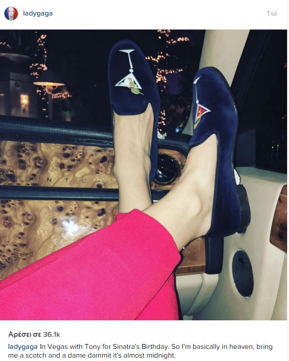 Μία φωτογραφία όπου διπλώνει τα πόδια της φορώντας ένα ζευγάρι μπλε, πιθανότατα καστόρινα παπούτσια με στάμπα ένα κοκτέιλ, ανέβασε στο Instagram η Lady Gaga, και προκάλεσε τις αντιδράσεις των θαυμαστών της…