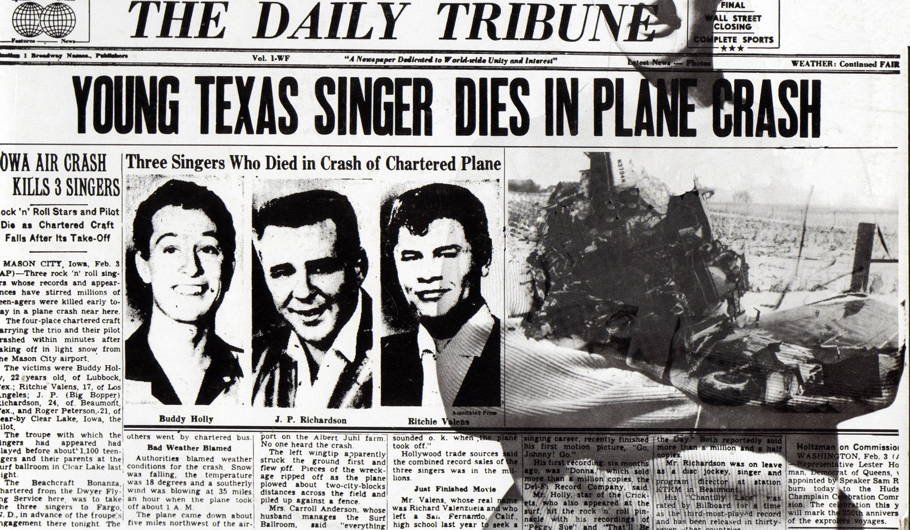 Ο Buddy Holly που ήταν μια ηγετική μορφή των ’50s στο rock and roll, πέθανε στις 3 Φεβρουαρίου 1959, σε ένα αεροπορικό δυστύχημα, όταν το μικρό ιδιωτικό αεροπλάνο που είχαν νοικιάσει για να μεταφέρει τους καλλιτέχνες από το Clear Lake της Iowa στο Moorhead της Minnesota, συνετρίβη λίγο μετά την απογείωσή του. Εκτός από τον Buddy Holly, σε εκείνη την μοιραία πτήση, πέθαναν και οι Ritchie Valens και Big Bopper, που ήταν συνεπιβάτες, καθώς και ο πιλότος. Αργότερα, στο τραγούδι του “American Pie”, ο Don McLean, περιγράφει στον στίχο του εκείνη την τραγική ημέρα ως την ημέρα που πέθανε η μουσική (“The Day the Music Died”).