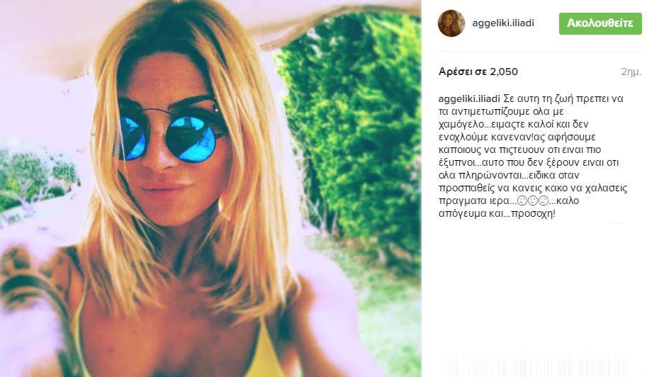 Η Αγγελική Ηλιάδη παραθέτει στο instagram ένα κείμενο – χείμαρρο, με «καρφιά».