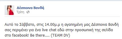 Οι fans της τραγουδίστριας θα μπορούν να μιλήσουν με την Δέσποινα μέσω της προσωπικής της σελίδας στο facebook.