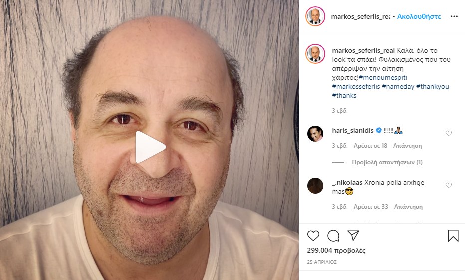 Πριν από λίγες ημέρες δημοσίευσε ένα βίντεο, στο οποία σχολιάζει τα μαλλιά του που λόγω της καραντίνας είχαν… πάθει σοκ. “Καλά, όλο το look τα σπάει! Φυλακισμένος που του απέρριψαν την αίτηση χάριτος”
