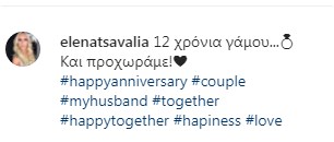 Με τη σειρά του ο Μάρκος Σεφερλής έκανε μια συγκινητική ανάρτηση: «Όταν ο γάμος είναι ωραίος κι ευτυχισμένος, δεν χρειάζεται να μετράς χρόνια! Παρόλα αυτά είναι 12! 12 υπέροχα χρόνια! Και πάντα μαζί! Εκεί ο ένας για τον άλλον! Μέχρι τα βαθιά μας γεράματα!»