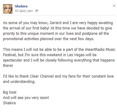 Η Shakira, όμως, με μια ανακοίνωση μέσα από τη σελίδα της στο Facebook, επιβεβαίωσε την εγκυμοσύνη της.Έγραψε: