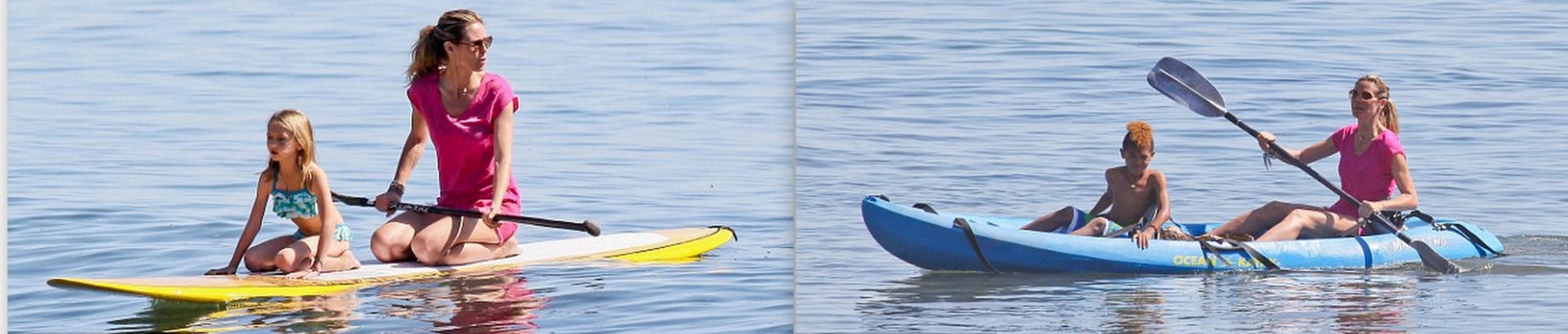 Η Heidi Klum δεν έκατσε να σκάσει και πολύ για τον χωρισμό της!Μόλις είδε ήλιο, μάζεψε τις μαύρες της πλερέζες, πήρε τα παιδιά της και πήγε στην πιο κοντινή παραλία για ν’ απολαύσει τον ήλιο και την θάλασσα! Ξεκίνησε κάνοντας κανό με την κόρη της Leni και με τον γιο της Henry…