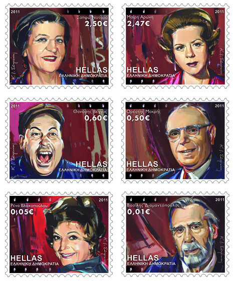 Ο γνωστός ζωγράφος Κώστας Ι. Σπυριούνης που εργάζεται στο Πολεμικό Μουσείο Αθηνών φιλοτέχνησε την δεύτερη σειρά γραμματοσήμων με τους αγαπημένους ηθοποιούς. Η σειρά αυτή κυκλοφόρησε τα τέλη Νοεμβρίου και έγινε ανάρπαστη. “Είναι μεγάλη χαρά και ικανοποίηση όταν καλείσαι να κάνεις μια τόσο λεπτή δουλειά με πρόσωπα που θαυμάζεις. Χαίρομαι που το αποτέλεσμα άρεσε”, δήλωσε ο γνωστός ζωγράφος.Τα πιο φθηνά είναι αυτά που απεικονίζουν τον Βασίλη Διαμαντόπουλο – το συγκεκριμένο γραμματόσημο κοστίζει 1 λεπτό και κυκλοφορεί σε 1,5 εκατομμύρια αντίτυπα. Πηγή: markos.tv