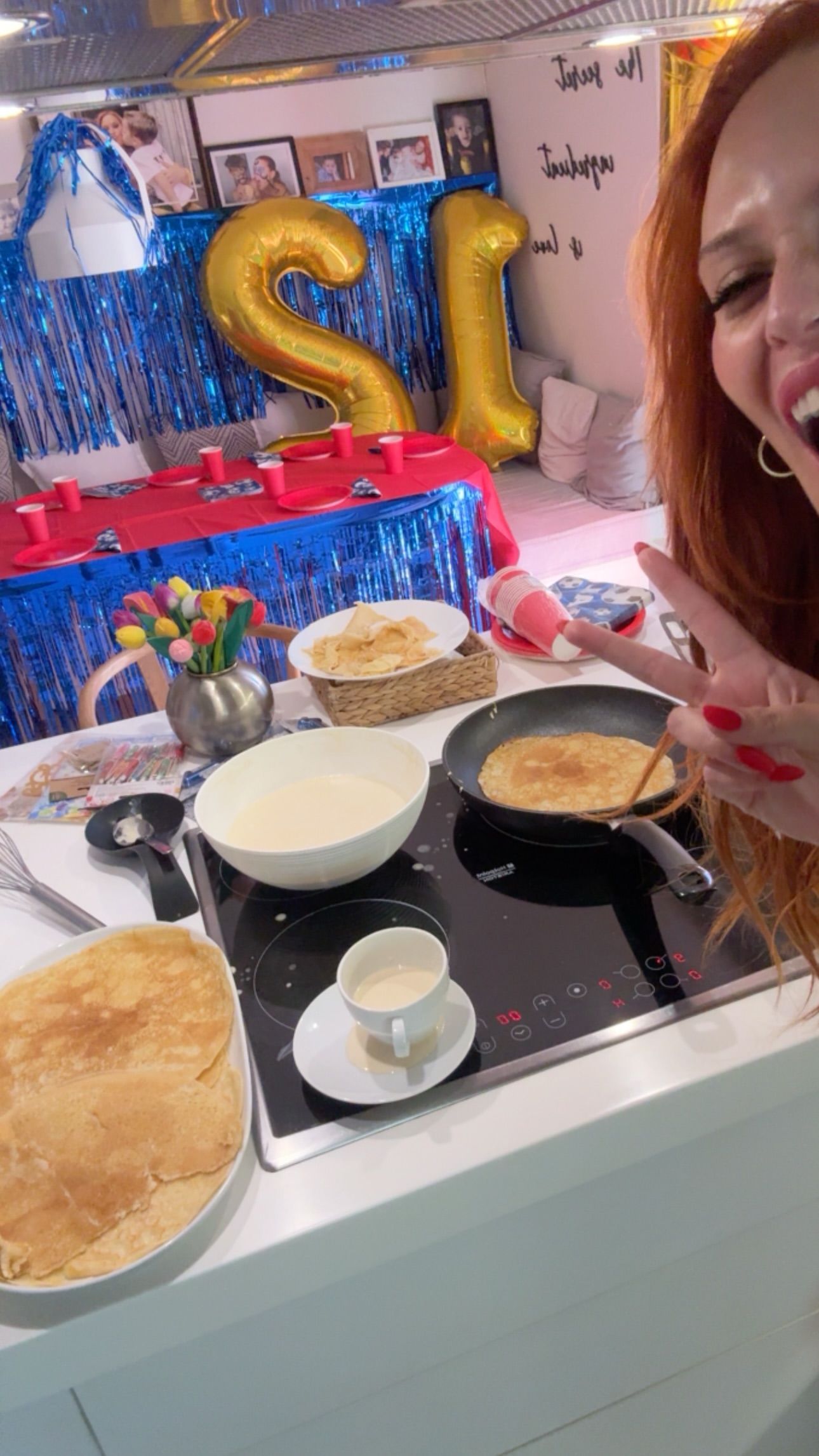 Η ίδια ετοίμασε μια τούρτα red velvet, έφτιαξε κρέπες για τον γιο της, ενώ παράλληλα φρόντισε και τον γιορτινό στολισμό του σπιτιού, δημιουργώντας μια ζεστή και χαρούμενη ατμόσφαιρα για την ξεχωριστή αυτή ημέρα.