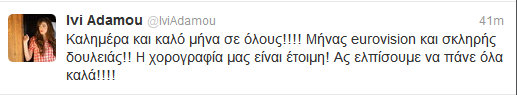 Η Ήβη Αδάμου μας καλημερίζει και ενημερώνει για το πώς πάνε οι προετοιμασίες της για τη Eurovision… Δείτε τι έγραψε στο twitter.