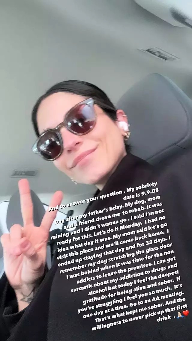 «Η αποτοξίνωσή μου ξεκίνησε στις 9/9 /08. Μία ημέρα μετά τα γενέθλια του μπαμπά μου. Ο σκύλος μου, η μαμά και ένας φίλος με οδήγησαν στο κέντρο αποτοξίνωσης. Έβρεχε και δεν ήθελα να πάω. Είπα δεν είμαι έτοιμη για αυτό. Ας το κάνουμε τη Δευτέρα. Δεν είχα ιδέα τι σήμαινε αυτή η ημέρα για εμένα. Η μαμά μου μου είπε “ας επισκεφτούμε το μέρος να δούμε πώς είναι και επιστρέφουμε σπίτι”. Κατέληξα να μένω εκεί 33 ημέρες.