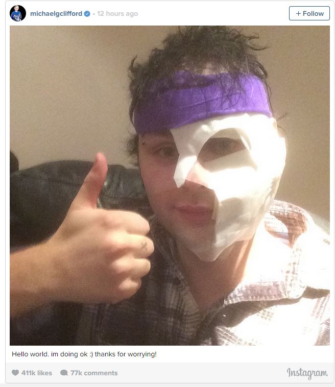 Ο ίδιος, λίγο αργότερα, έσπευσε να καθησυχάσει τους θαυμαστές του ανεβάζοντας μία φωτογραφία του στο Instagram, όπου εικονίζεται με επιδέσμους, σημειώνοντας ότι είναι καλά.