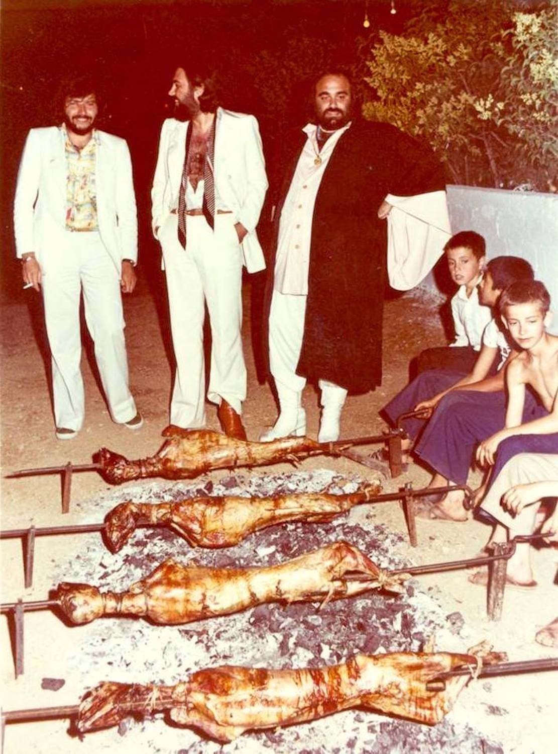 Η φωτογραφία προέρχεται από τις αρχές της δεκαετίας του ’80, όταν ο Βαγγέλης Παπαθανασίου ξανάρθε στην Ελλάδα για λίγες εβδομάδες μετά από πολλά χρόνια που έλειπε στο εξωτερικό. Στην αρχή είχε κλείσει δύο μπανγκαλόους στο Χίλτον της Αθήνας, στη συνέχεια πήγε σε μια σουίτα στον Αστέρα της Βουλιαγμένης. Εκεί είχαν πάει να τον συναντήσουν οι παλιοί του φίλοι και συνεργάτες στους “Aphrodite’s Child”, ο Λουκάς Σιδεράς και ο Ντέμης Ρούσσος.