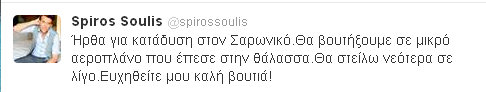 Που βρίσκεται αυτή τη στιγμή ο Σπύρος Σούλης; Δείτε τι έγραψε στο twitter του…