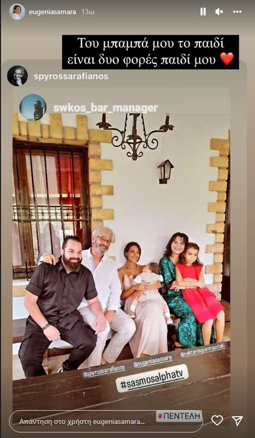 Χαρακτηριστικές είναι οι φωτογραφίες που δημοσίευσε η Ευγενία Σαμαρά που στη σειρά υποδύεται την “Στέλλα”, κόρη του “Τάσου Καμαριωτάκη”.
