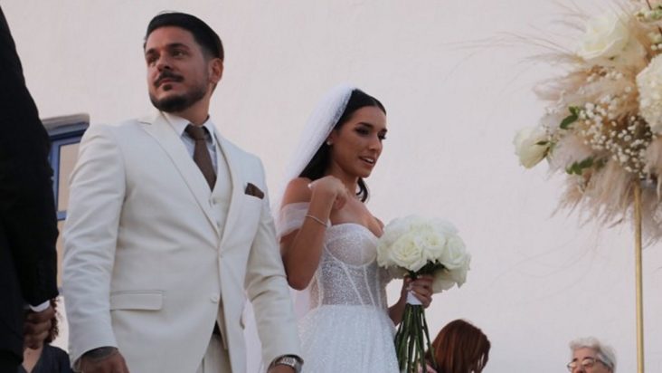 Ο γάμος του ζευγαριού έγινε στον τόπο καταγωγής του τραγουδιστή, την Πάρο. Ο γαμπρός έφτασε στο Μοναστήρι του Αγίου Ιωάννη Δέτη συνοδευόμενος από τον πατέρα του, αγαπημένα του πρόσωπα αλλά και από μουσικά όργανα.