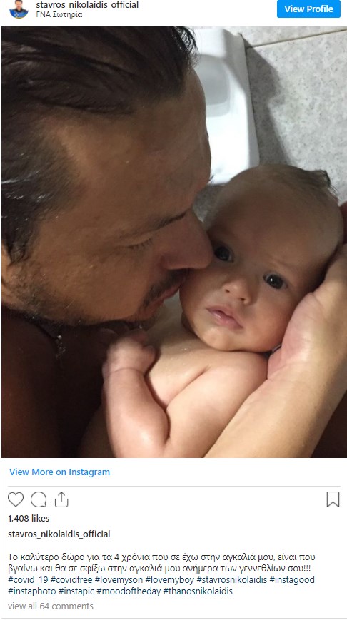 «Το καλύτερο δώρο για τα 4 χρόνια που σε έχω στην αγκαλιά μου, είναι που βγαίνω και θα σε σφίξω στην αγκαλιά μου ανήμερα των γενεθλίων σου!!!», σχολίασε στη λεζάντα της ανάρτησής του ο Σταύρος Νικολαΐδης.