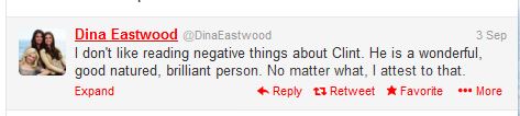 Η σύζυγος του Κλιντ Ίστγουντ, Ντίνα, έστειλε το μήνυμά της μέσω twitter.